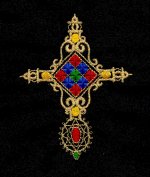 Jewels and lace reflect the Elizabethan era for modern sewists. Stitched in metallic and rayon thread, the "jewels" are stunning. The smaller accessory designs may be used as accents or button covers. Smaller K-LaceŽ edgings are provided in two styles--straight and flexible--with an exciting larger edging for that special project. The K-LaceŽ crosses have multiple uses as well: tree ornaments, card inserts, bookmarks.... Five of the crosses also may be used to make ornament covers,