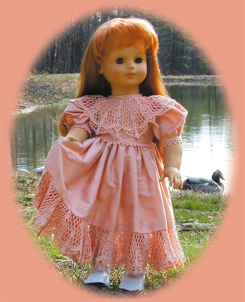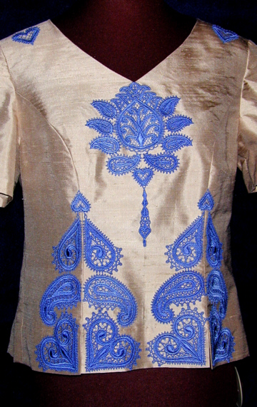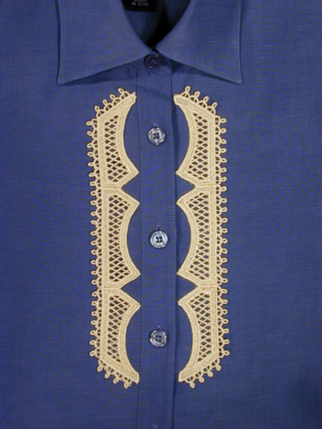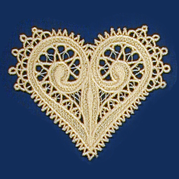 Click here to see all the individual designs. Here's a practical yet beautiful group of lace designs themed with paisleys and hearts. The elegant motifs and borders may be used to make arrangements fitted to common features of clothing, such as necklines, skirt slits, corners, borders and button plackets as shown above. The doll modeling a dress with the lace border designs is Dress Me Martha, available from The Martha Pullen Company. General instructions for the dress lace are here. Several composite designs are included in dst format for big hoops. All are stitched with 40-wt rayon on water soluble stabilizer. Another versatile collection of quality K-Lace designs by Kae Barron!