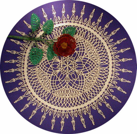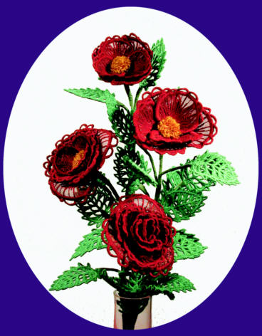 Roses, roses, roses! Decorate with doilies in three shapes, plus freestanding roses --from buds to full-blown beauties. Petals are stitched with organza, while leaves are thread-only K-LaceŽ. All designs in this package are stitched with 50/60 wt. cotton thread. The oval doily (13" x 16") may be made longer by adding to the center. Two edging styles are available for all doilies. The 11" square doily may also be stitched larger or rectangular by adding squares. This collection also contains coordinating versatile flexible edgings. Composite files included for machines with larger hoops.