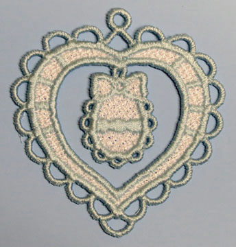 E514 Lined Lace Heart Gift or Sachet Pocket Stitched all in the hoop Two sizes. Small fits 4x4 hoop. Large needs 5x7 hoop.