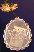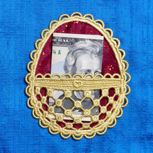 E515 Lined Lace Egg Gift Pocket Stitched all in the hoop Two sizes. Small fits 4x4 hoop. Large needs 5x7 hoop.