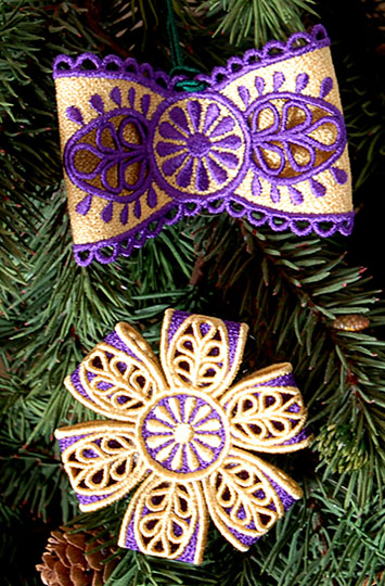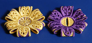 This project requires synthetic organza. Each panel stitches all in hoop (fringe is part of the design).